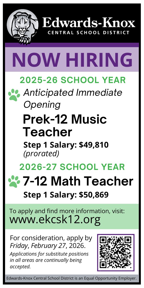Edwards-Knox Central School District is an Equal Opportunity Employer.